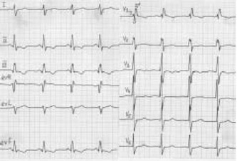 Вторичный дефект межпредсердной перегородки: признаки гипертрофии миокарда правого желудочка, неполная блокада правой ножки пучка Гиса.