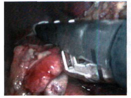 Рис. 15-5. Линия скрепок на сосудистой ножке после ее пересечения аппаратом «ENDO-GIA 30».